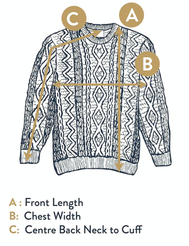 Con una bellissima combinazione di punti Aran tradizionali come nido d'ape, che simboleggia fortuna e abbondanza e nel caso dei pescatori irlandesi una buona cattura, muschio, simboleggiante la famosa alga irlandese utilizzata come feritilizzante naturale e infine le trecce,come auspicio di sicurezza e buona fortuna, questo capo si ispira al passato pur rimanendo saldamente radicato nel presente.