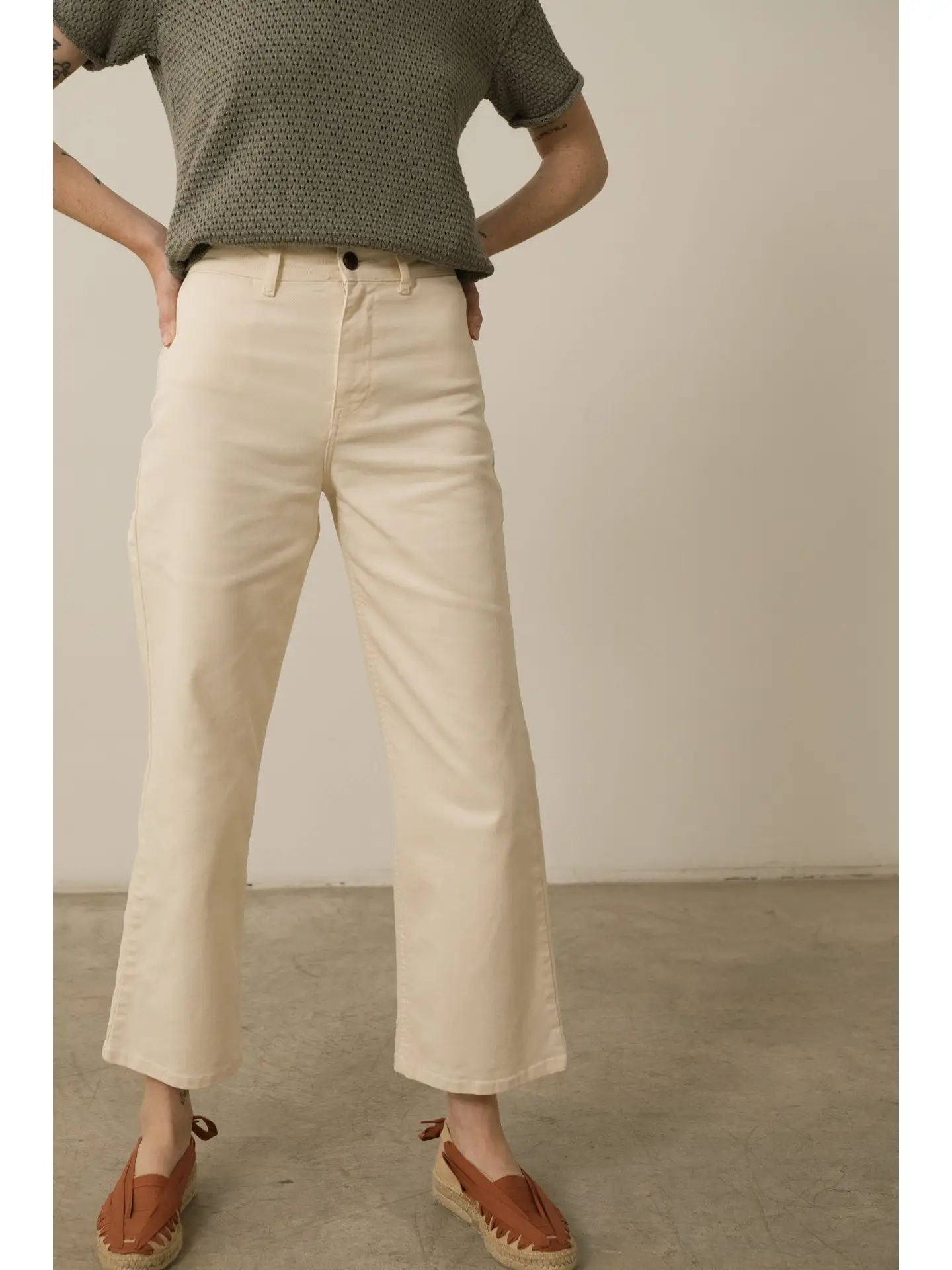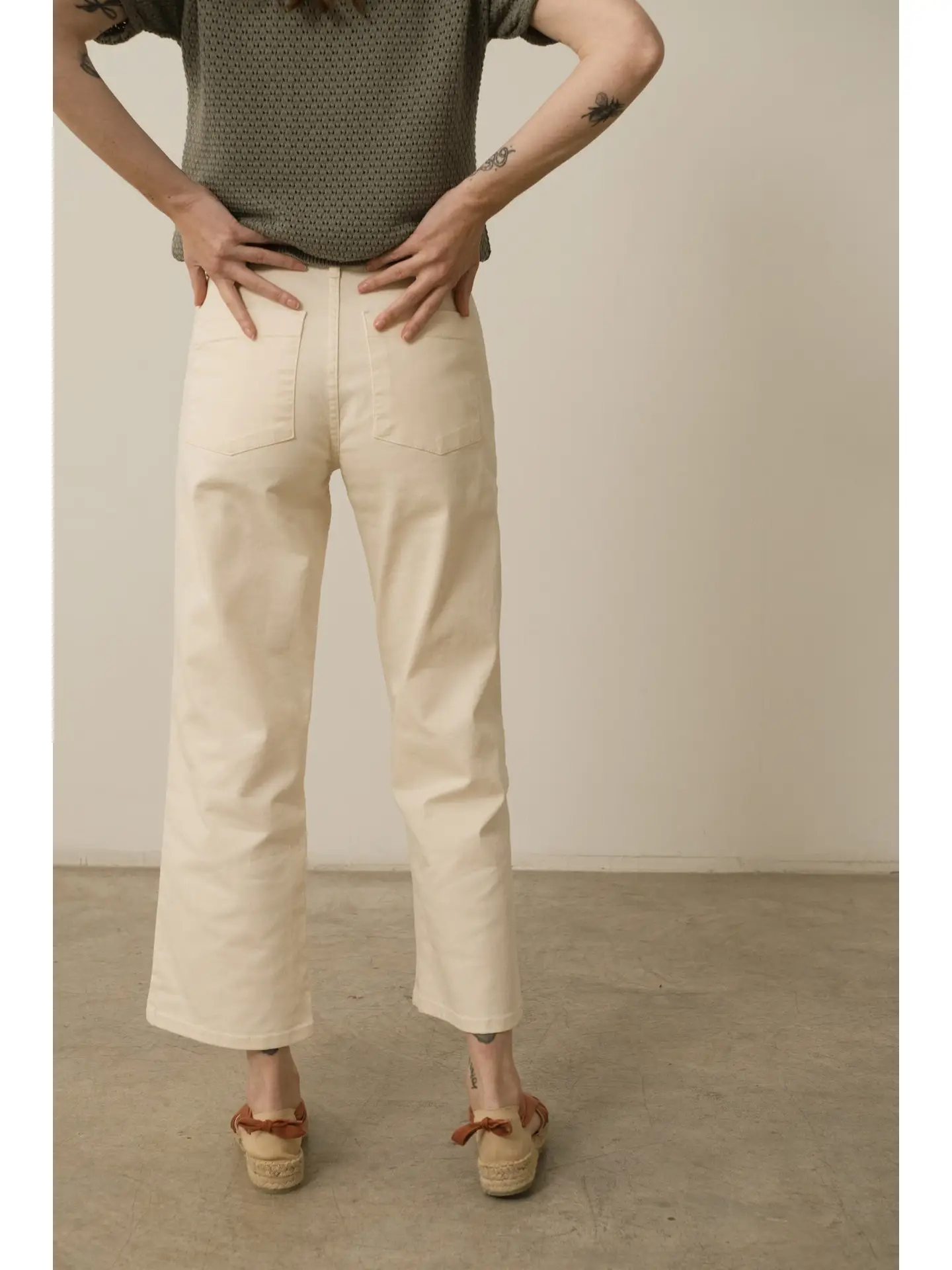 I jeans Ani sono un classico per tutte le stagioni. A vita media, progettati per allungare la silhouette. Dotati di un bottone in corozo naturale e biodegradabile, sono realizzati in denim spesso di cotone biologico riciclato, cotone biologico, con un tocco di elastan per il massimo comfort.