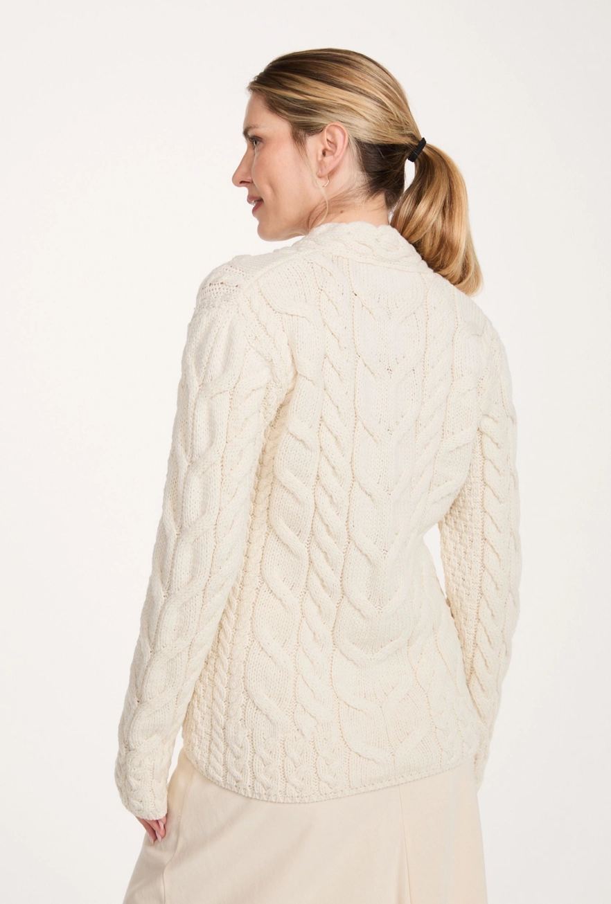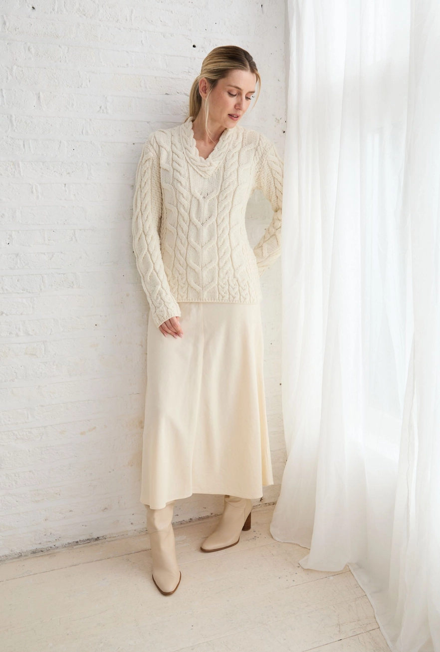 Progettato e realizzato nel nostro stabilimento sulla costa occidentale dell'Irlanda, questo maglione lavorato a maglia con cura è un'elegante interpretazione di un'artigianato tradizionale.